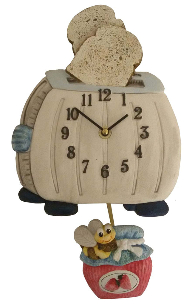 Das verspielte Motiv eines Toasters mit einem Erdbeer-Marmeladenglas und einer kleinen Biene sorgt sofort für gute Laune. Ein besonderes Highlight ist das Pendel in Form eines Marmeladenglases, das der Uhr einen lebendigen Charakter verleiht und die Raumwirkung positiv beeinflusst.