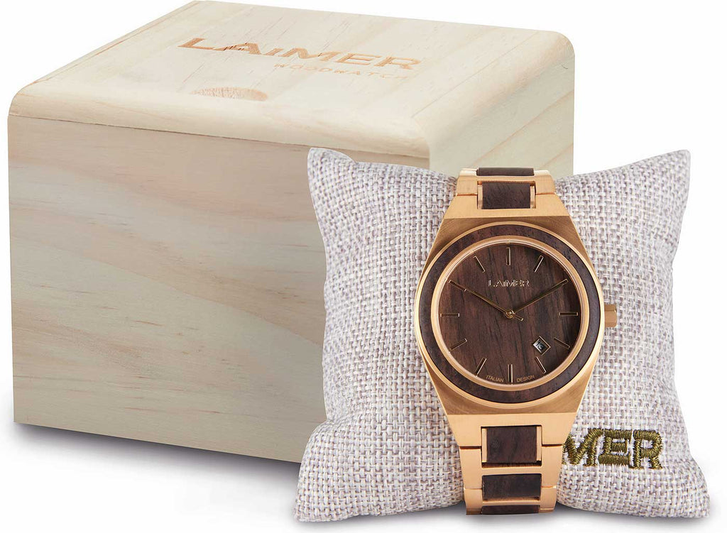 Die Laimer Colin 0149 ist mehr als nur eine Armbanduhr – sie ist ein Statement für Naturbewusstsein und alpinen Lifestyle. Gefertigt aus hochwertigem Leadholz und robustem, goldfarbenem Edelstahl, vereint dieser Zeitmesser die raue Schönheit der Südtiroler Natur mit moderner Eleganz.