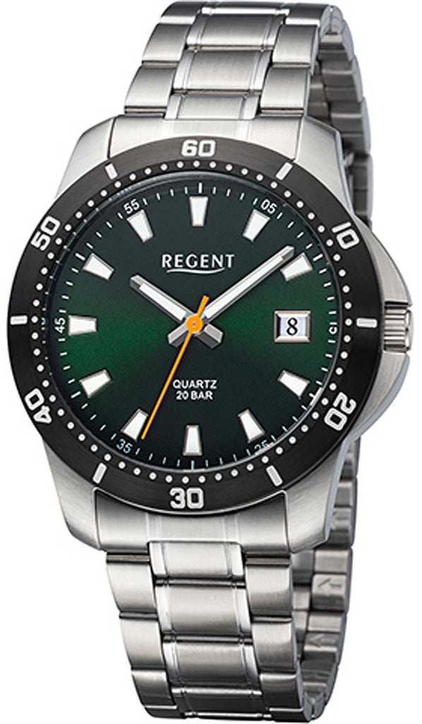 Die Regent BA-754 ist eine grundsolide Herren Uhr, die durch ihr markantes grünes Zifferblatt und die robuste Verarbeitung überzeugt. Als die deutsche Uhrenmarke bietet Regent hier eine Armbanduhr mit erstklassigem Preis-Leistungs-Verhältnis für den aktiven Alltag.