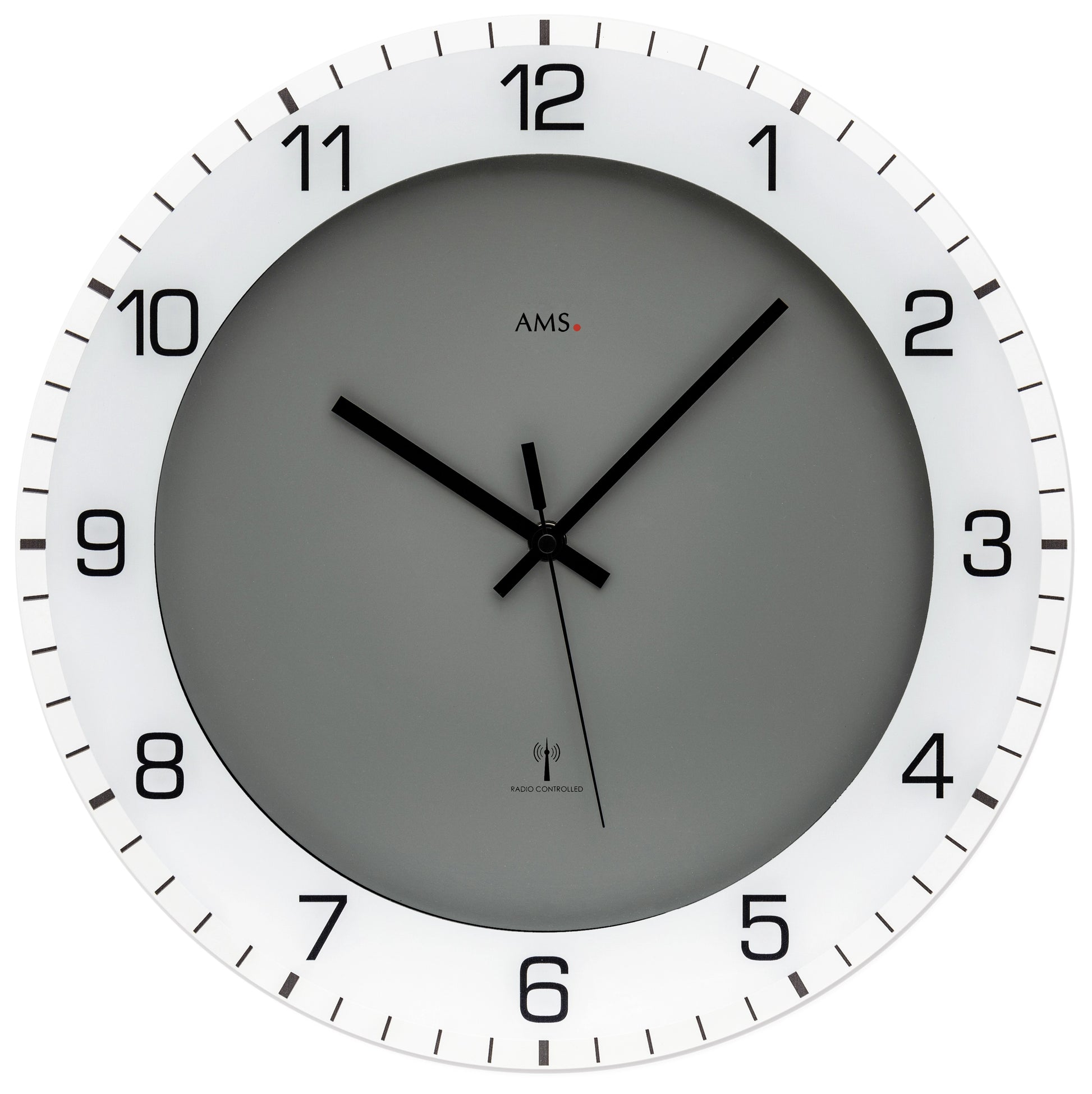 AMS Wall Clock 38 cm Ø Plastic, Glass • Precise Radio-Controlled Movement • Modern Design