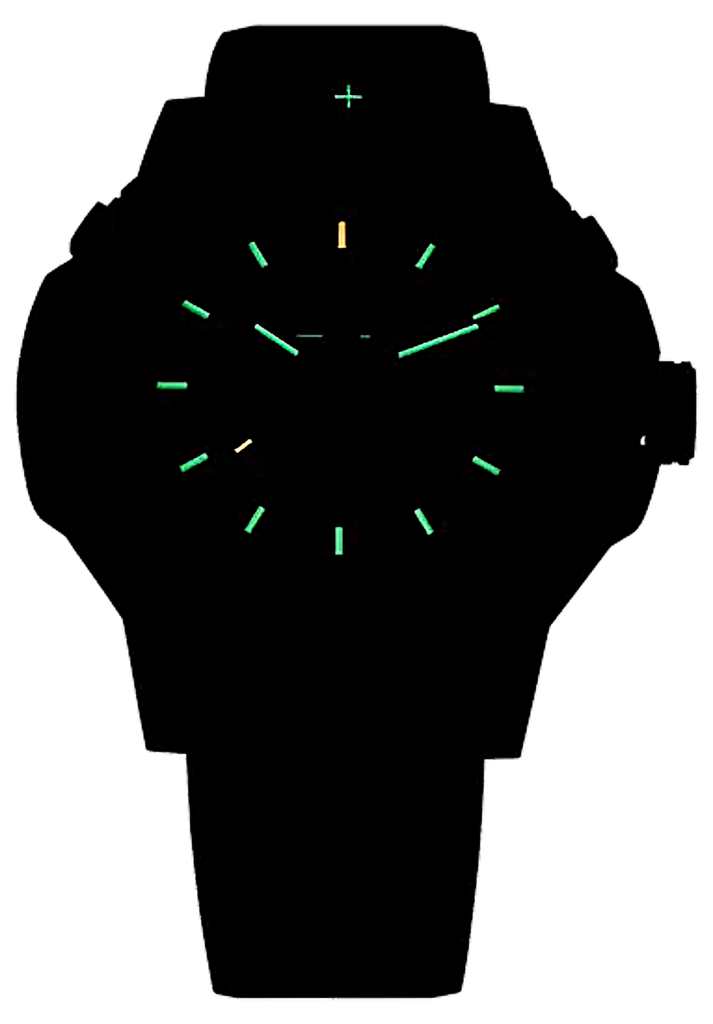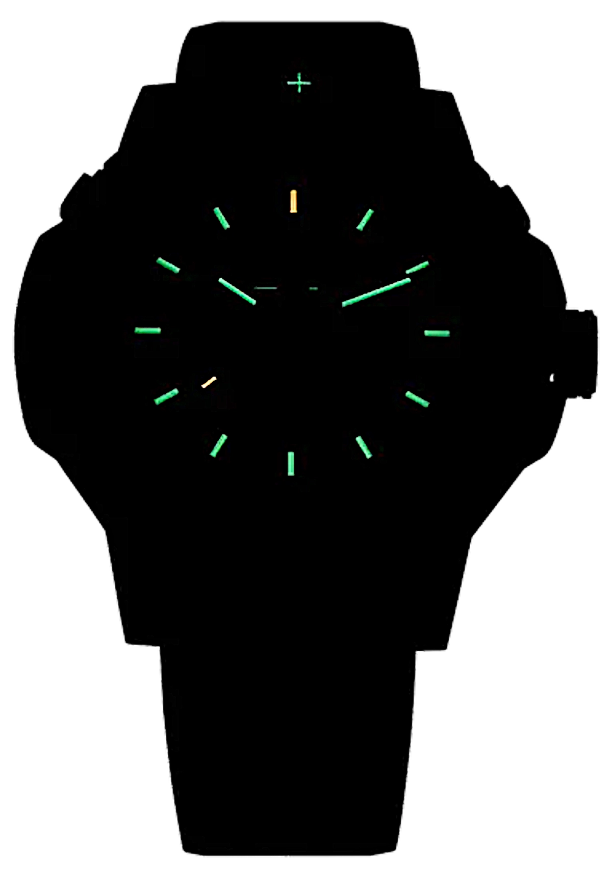 At its heart is a high-quality Swiss automatic movement, protected by an innovative double casing made of stainless steel and carbon fiber reinforced polymer. Thanks to the legendary Trigalight self-illumination technology, the time remains perfectly legible even in absolute darkness without an external light source.