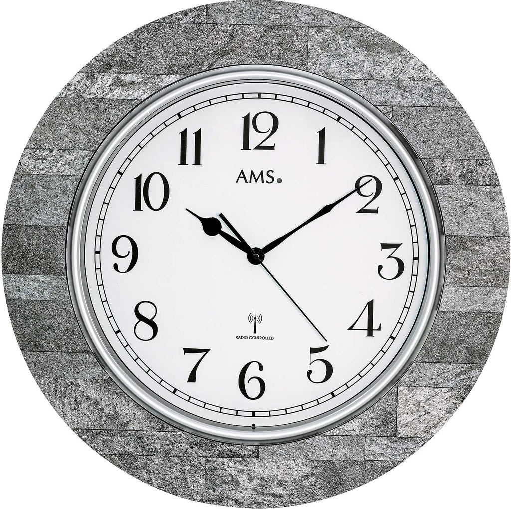AMS 5570 – große Funkwanduhr mit Steinoptik und modernem Naturdesign