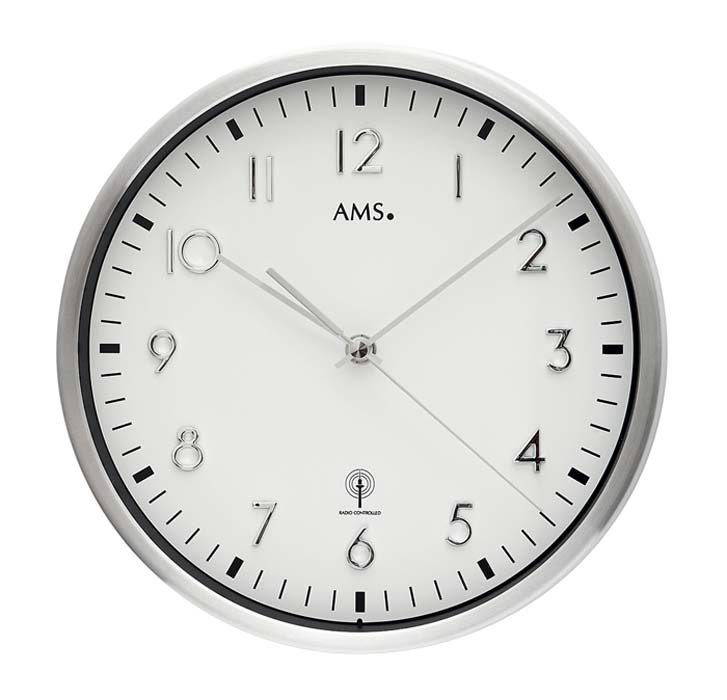 AMS Wanduhr 5912 – Funkwanduhr aus gebürstetem Aluminium mit klarer Zeitanzeige