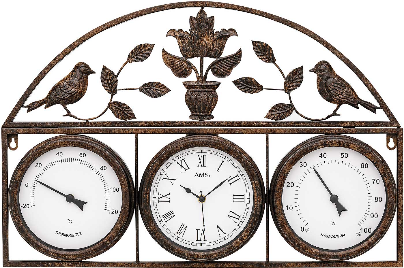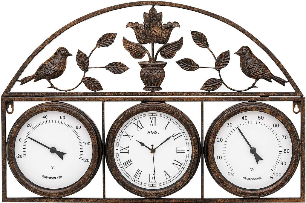 AMS Wanduhr 5967 – Antike Funkwanduhr mit Wetteranzeige im Querformat