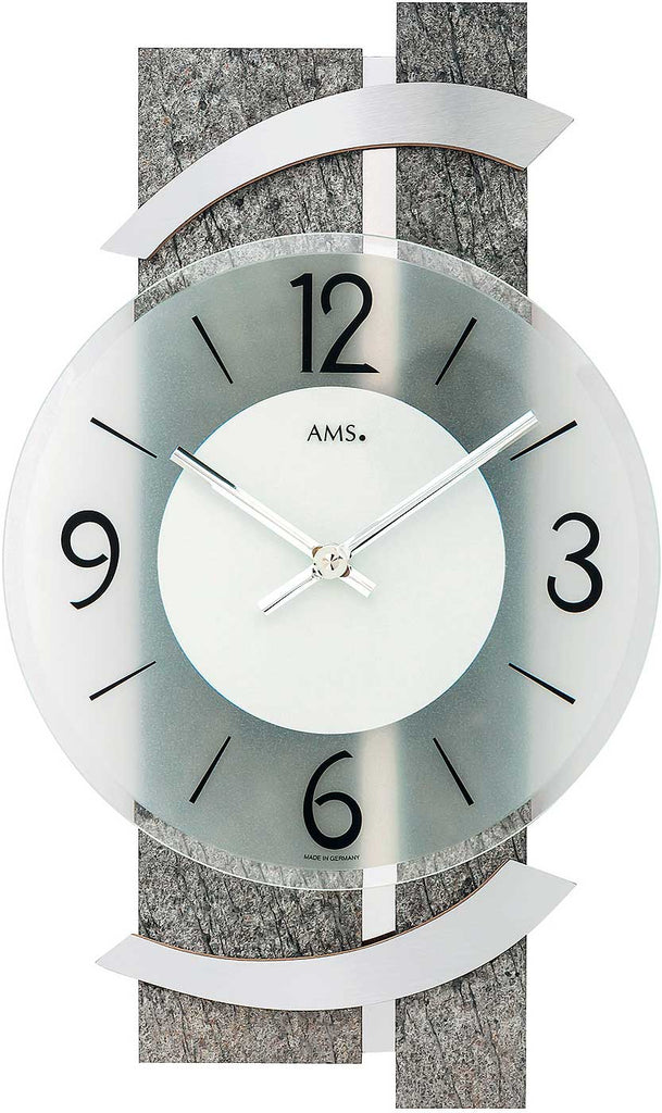 Das AMS Modell 9548 ist eine außergewöhnliche Wanduhr, die mit einer spannenden Materialkombination und edlem Design begeistert. Diese stilvolle Uhr bringt nicht nur Zeit in Ihre Räume, sondern auch Charakter. Mit Naturstein, Aluminium, Holz und facettiertem Glas wurde hier ein hochwertiges Gesamtbild geschaffen, das besonders gut in modern eingerichtete Wohnräume passt.