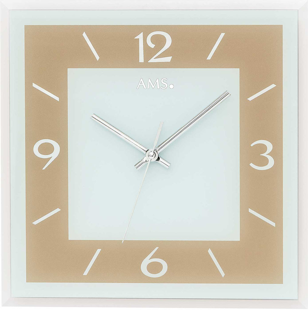 Das quadratische Spiegelglas-Zifferblatt kombiniert einen goldfarbenen Rahmen mit einem dezenten Strichindex und vier arabischen Ziffern, wodurch das Design sowohl klar als auch dekorativ wirkt. Die schwarzen Zeiger bieten dabei einen angenehmen Kontrast für gute Lesbarkeit. Ein geräuschloses Quarzuhrwerk sorgt für präzise Zeitanzeige und macht die AMS 9574 auch für ruhige Räume wie Schlafzimmer oder Arbeitszimmer zur idealen Wahl.