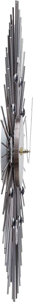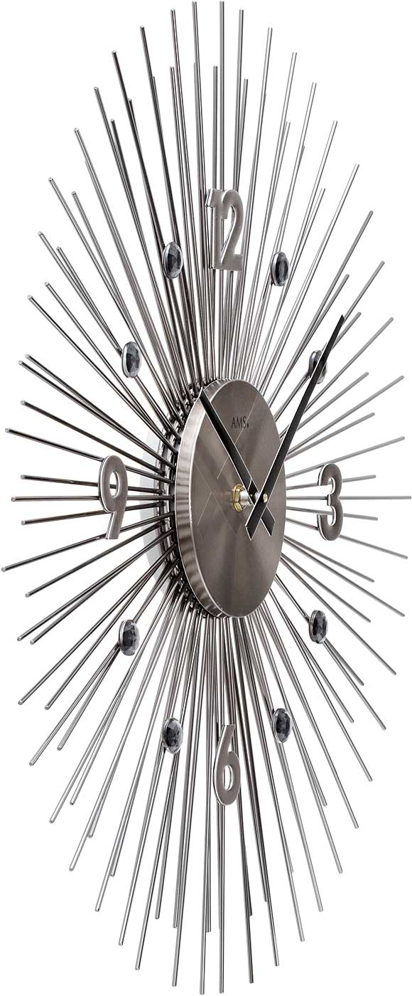 AMS 9610 vereint dekoratives Design mit zuverlässiger Technik – ideal für stilbewusste Wohnräume. Diese außergewöhnliche Wanduhr beeindruckt mit einem strahlenförmigen Gehäuse aus anthrazitfarbenem Metall und glitzernden Punktindizes, die das moderne Zifferblatt effektvoll hervorheben. Die arabischen Ziffern und das klare Layout sorgen für eine gute Lesbarkeit, während das präzise Quarzwerk eine zuverlässige Zeitangabe gewährleistet. Mit einem Durchmesser von 50 cm ist die Uhr nicht nur ein funktionaler Zeitmesser, sondern zugleich ein elegantes Wohnaccessoire mit Glamourfaktor – perfekt für Wohnzimmer, Essbereiche oder moderne Flure.