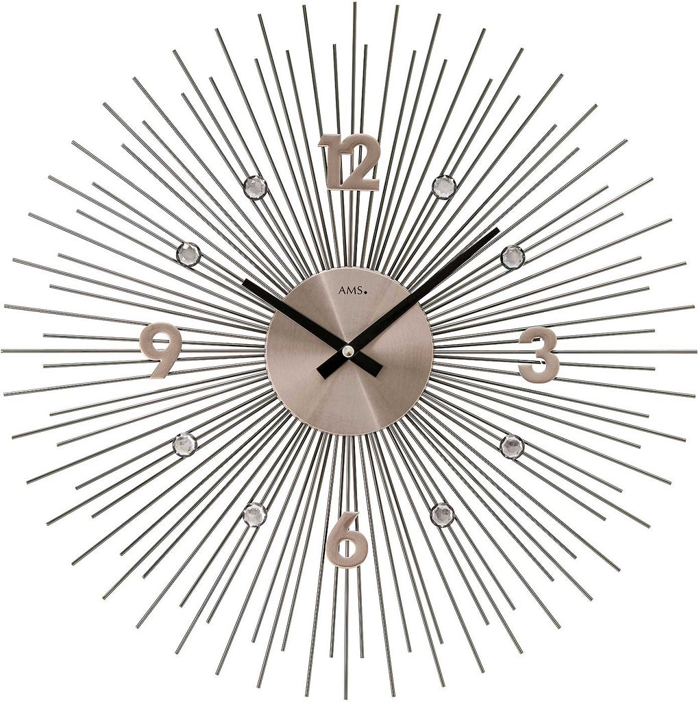 AMS 9610 – Stilvolle Metall-Wanduhr mit funkelnden Details