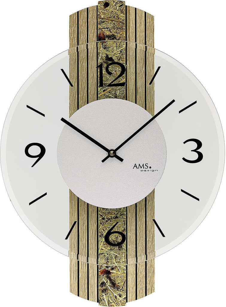 moderne Wanduhr mit Almheu-Auflage - AMS Modell: 9674