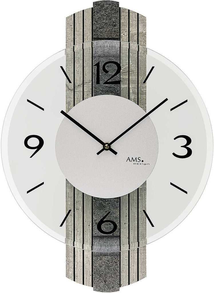 moderne Wanduhr mit Stein-Auflage - AMS Modell: 9675