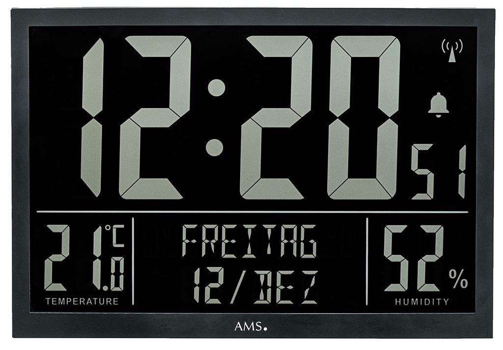 AMS Digitale Funk-Wanduhr F5889 • LCD Anzeige • Temperatur & Luftfeuchtigkeit