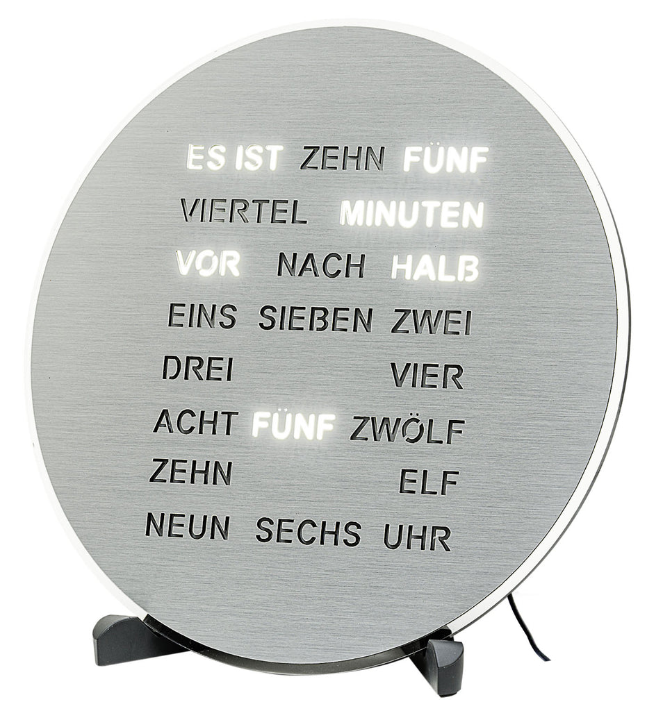 AMS Tisch- und Wanduhr T1295 • LED-Anzeige • Wortuhr in Aluminium geschliffen