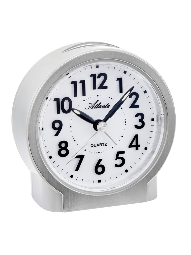 Atlanta Geräuschloser Quarz-Tischwecker mit Snooze, Leuchtzeiger, Hellgrau/Silberfarben - Atlanta Modell: 2173/X