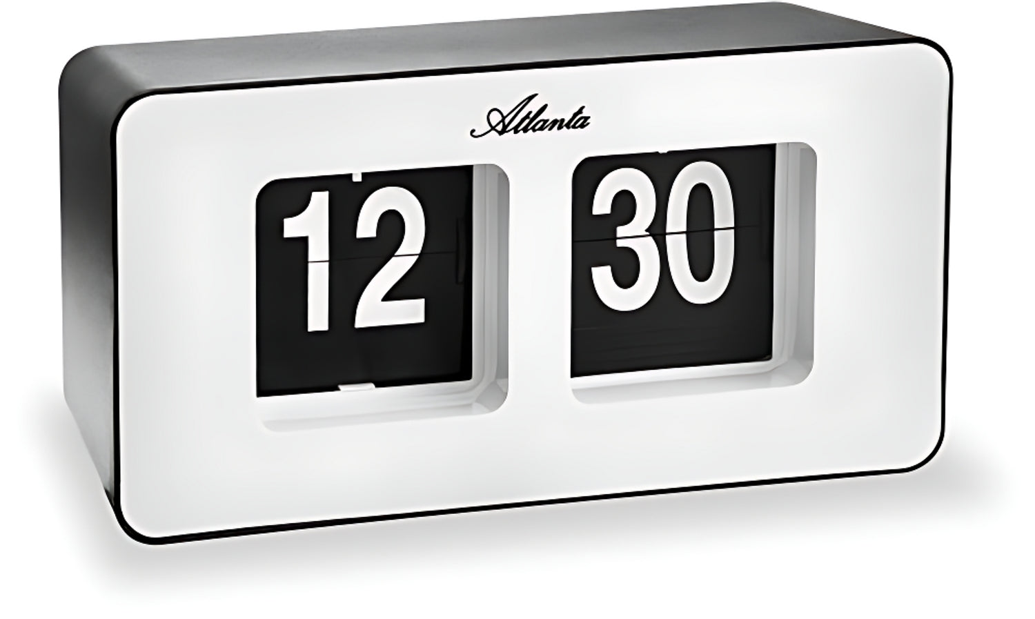 Die kontrastreiche Darstellung in Schwarz und Weiß sorgt für eine ausgezeichnete Lesbarkeit der Uhrzeit. Ob auf dem Regal, Schreibtisch oder an der Wand – das kompakte Gehäuse aus hochwertigem Kunststoff fügt sich mühelos in jede Umgebung ein. Das präzise Quarzwerk garantiert eine zuverlässige Zeitanzeige im 24-Stunden-Format. Mit der Modellnummer 4464/0 liefert Atlanta ein funktionales Designobjekt mit Charakter – ideal für Liebhaber des Retro-Stils.