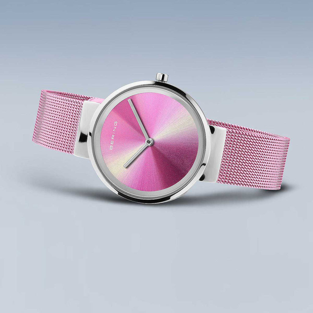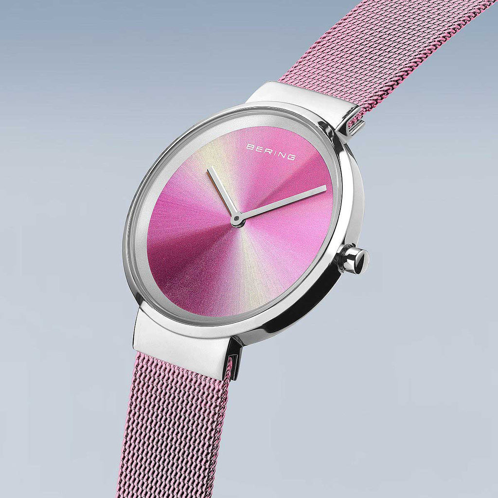 Die Bering Classic 19031-999 Damenuhr vereint skandinavische Ästhetik mit moderner Eleganz. Das markante Sunray-Zifferblatt in Multicolor erinnert an die magischen Farben des Polarlichts und macht diese Armbanduhr zu einem echten Blickfang am Handgelenk.