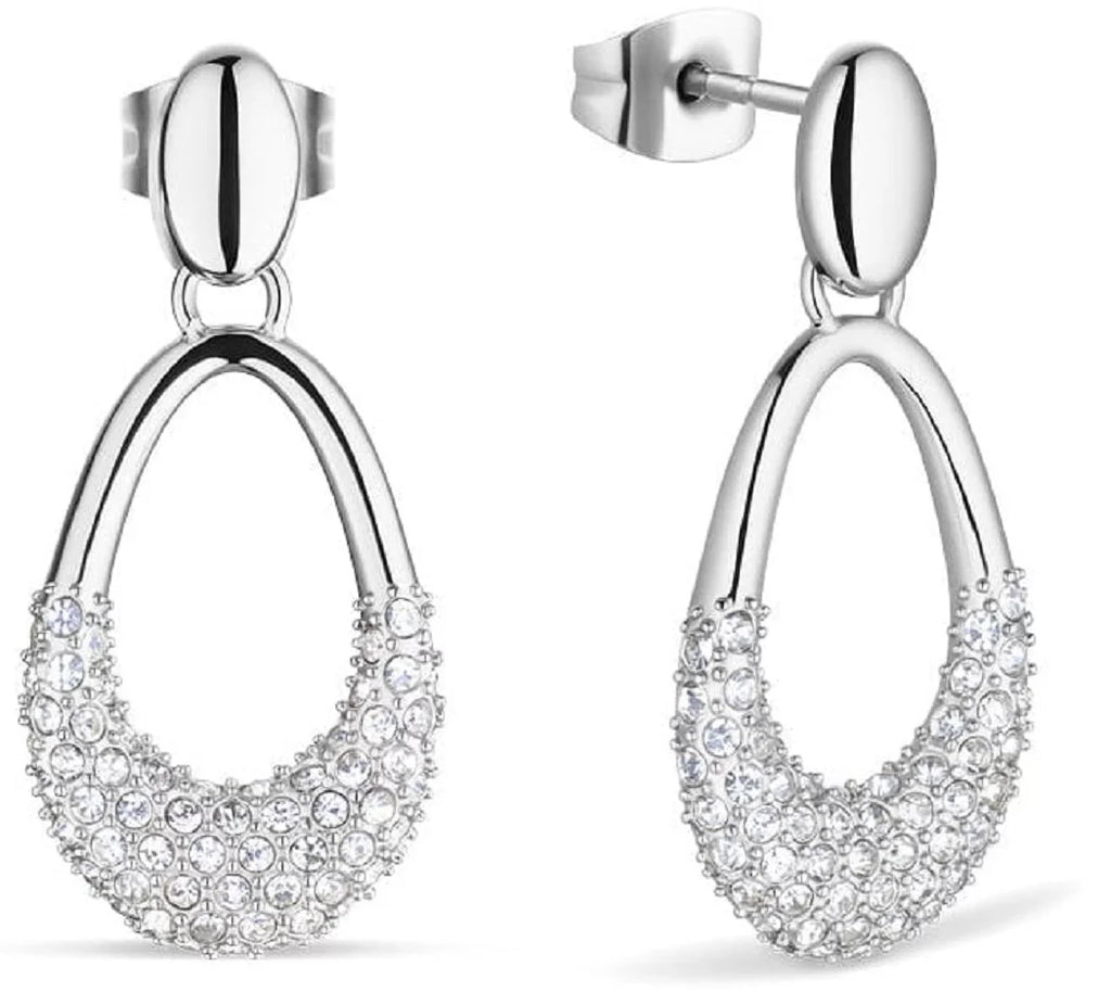 Arctic Pavé Ohrringe 757-17-05: Elegante silberne Tropfen mit funkelnden Kristallen - BERING Modell: 757-17-05