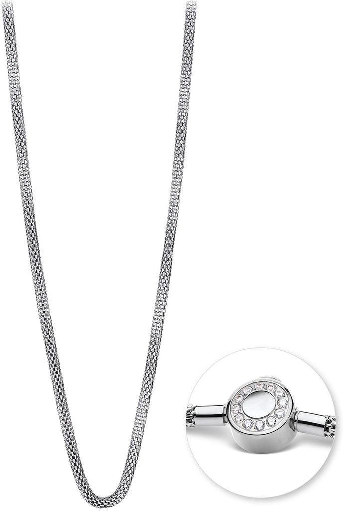 Die Bering Jewelry Halskette 426-10-600 überzeugt durch ihr zeitloses Design und ihre vielseitige Tragbarkeit. Gefertigt aus glänzend poliertem Edelstahl in klassischem Silber, präsentiert sich die Halskette mit einer feinen Milanaise-Struktur, die für eine elegante und geschmeidige Optik sorgt. Mit einer Länge von 600 mm und einer Breite von 3,5 mm eignet sie sich ideal für längere Anhänger oder als markantes Einzelstück. Besonders praktisch: Die Kette kann mit Charms kombiniert werden und lässt sich so individuell gestalten. Der Magnetverschluss, verziert mit funkelnden Zirkonia-Steinen, setzt einen eleganten Akzent und sorgt gleichzeitig für hohen Tragekomfort und sicheren Halt.