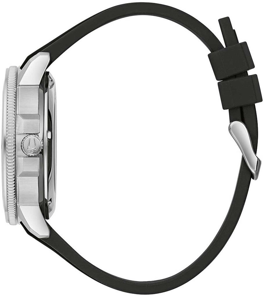 Die Bulova Marine Star 96A288 ist nicht nur ein Zeitmesser, sondern ein Statement. Mit ihrem robusten Edelstahlgehäuse und dem klaren schwarzen Zifferblatt setzt sie Akzente am Handgelenk und ist bereit für jedes Abenteuer.