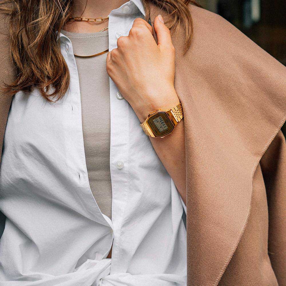 Diese goldfarbene Armbanduhr ist ein unverzichtbares Accessoire für Fans des legendären Casio-Designs, die nicht auf smarte Features verzichten wollen.
