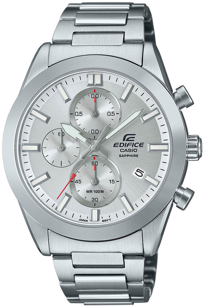 Die Casio Edifice CASIO-EFB-710D-7AVUEF ist eine sportlich-elegante Herrenuhr, die höchste Präzision mit einem zeitlosen Design vereint. Diese Armbanduhr besticht durch ihre hochwertige Verarbeitung aus massivem Edelstahl und ist der ideale Begleiter für den modernen Mann, der Wert auf Stil und Funktionalität legt.