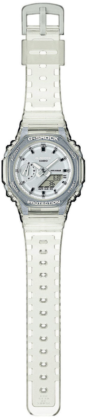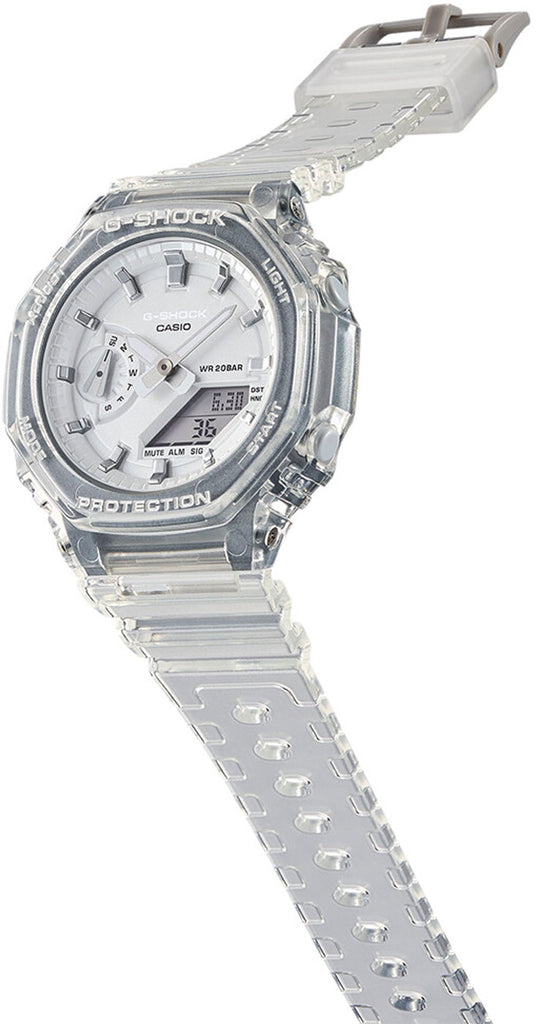 Diese G-SHOCK besticht durch ihr einzigartiges transparentes Design und ist bis 20 Bar wasserdicht. Sie trotzt den Herausforderungen des Alltags und ist bereit für jedes Abenteuer.