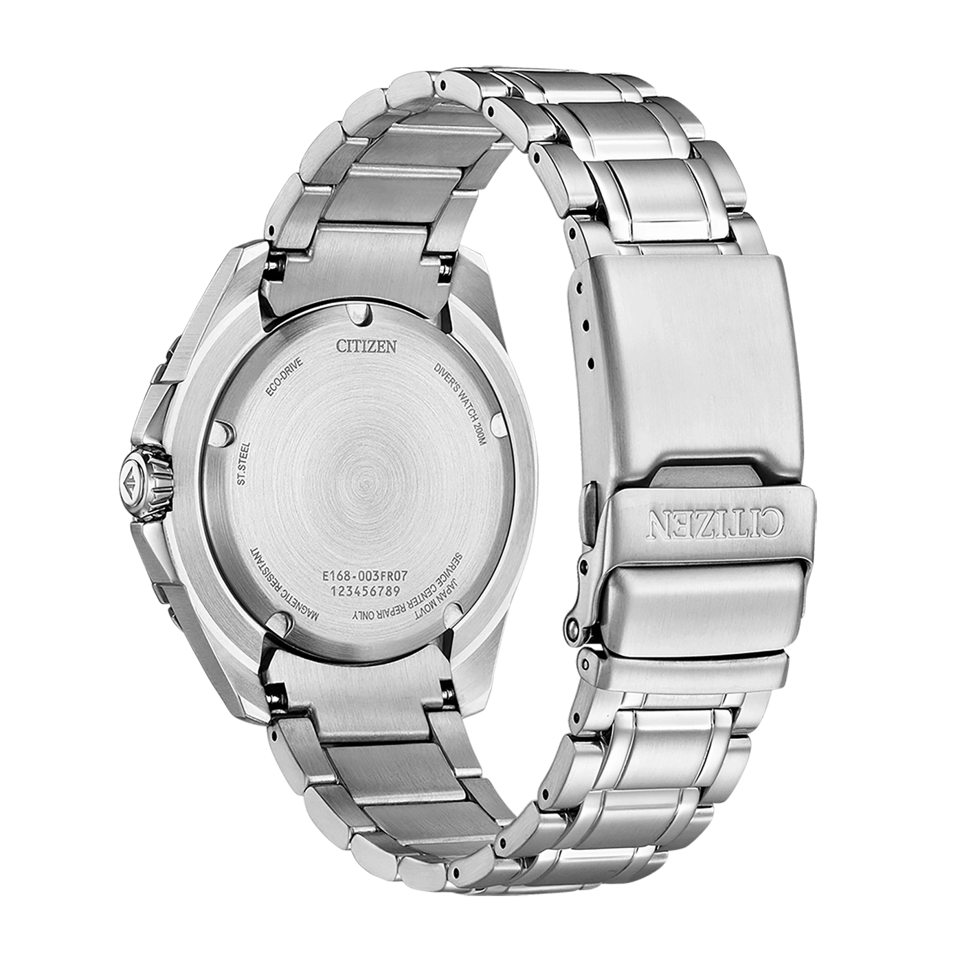 Eco-Drive, ISO 6425 zertifiziert, Verschraubte Krone, Verschraubter Gehäuseboden, Einseitig drehbare Lünette, Lumineszierende Zeiger, Lumineszierende Indizes, 180 Tage Dunkelgangreserve |