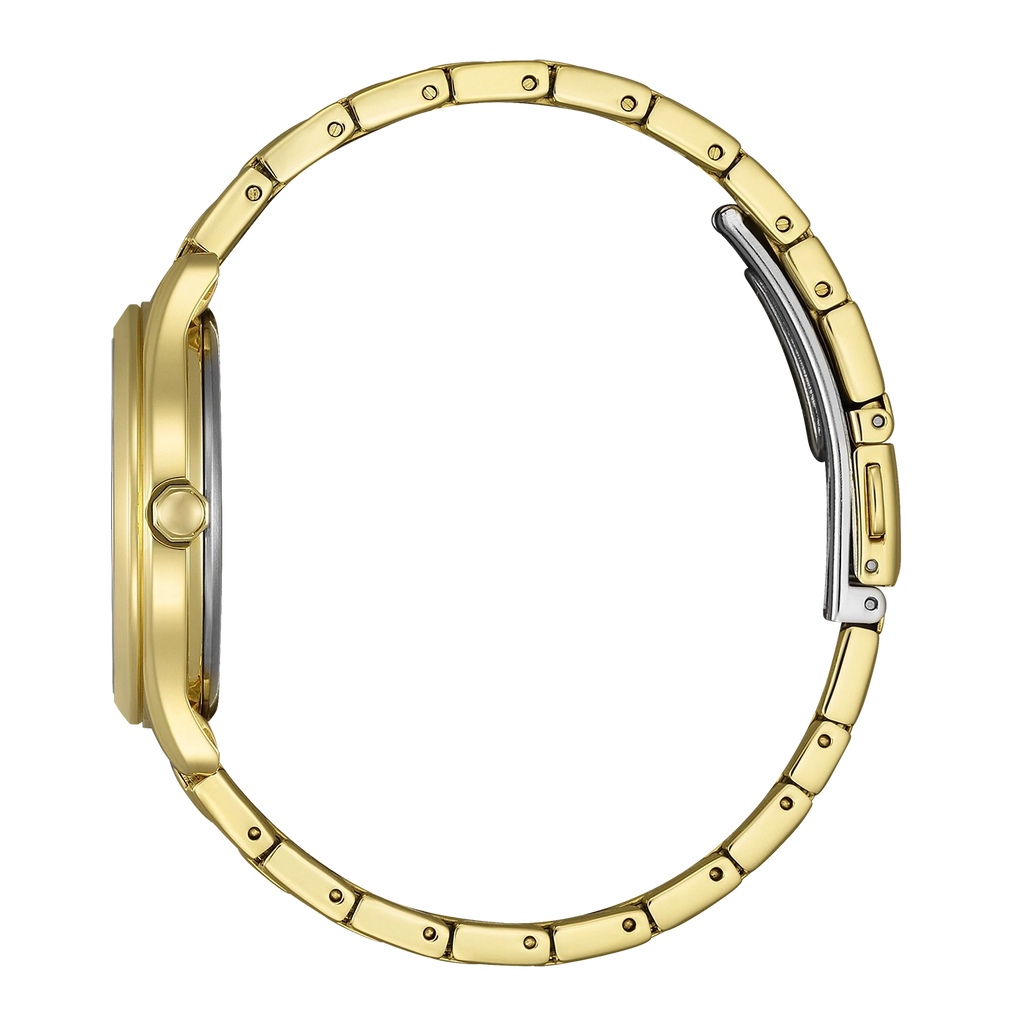 - Hochwertiges Edelstahl: Robustes Gehäuse und Armband in glänzendem Goldton für Langlebigkeit und Eleganz.