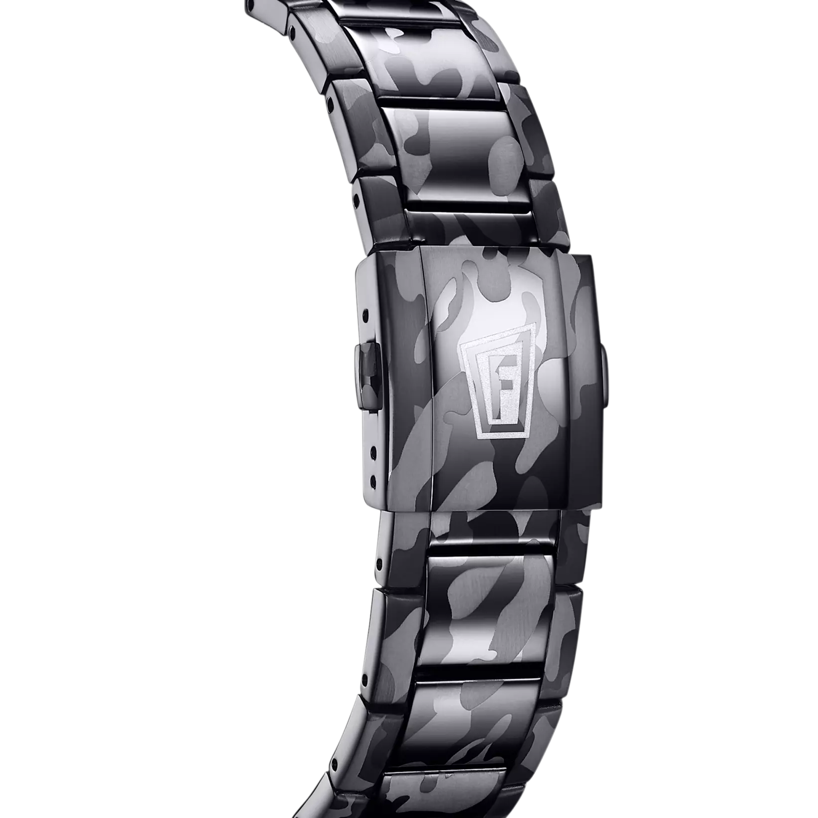 • Robustes Gehäuse und Armband in einzigartiger grau-schwarzer Camouflage-Optik