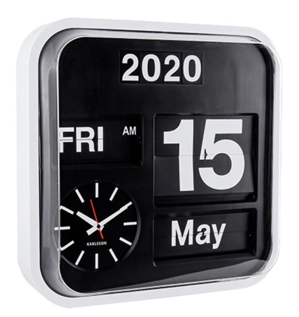 Karlsson Wanduhr 43,2x43,2 cm • Kalenderfunktion • Retro-Design • Präzises Quarzwerk