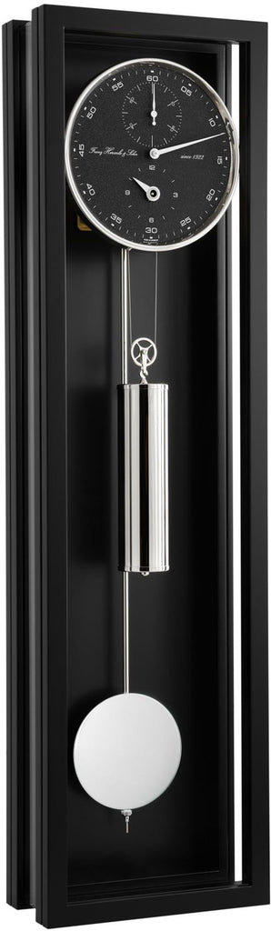 Die Hermle Wanduhr 71007-740761 ist eine beeindruckende und moderne Monatswerk-Regulatoruhr, die durch ihr minimalistisches Design und ihre hochwertige Verarbeitung besticht. Das Gehäuse aus massivem Holz ist allseitig verglast, was einen optimalen Blick auf das faszinierende Hermle 0761 Uhrwerk erlaubt.