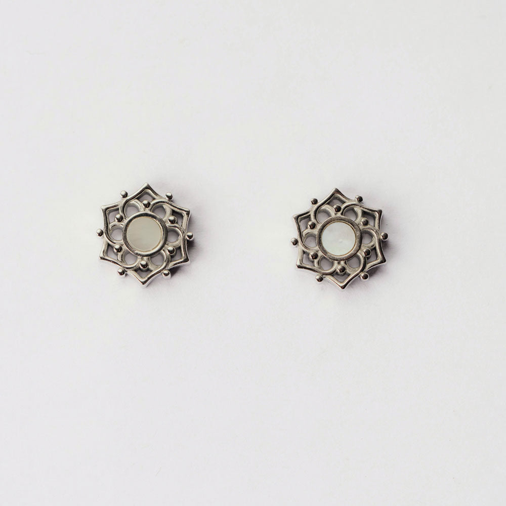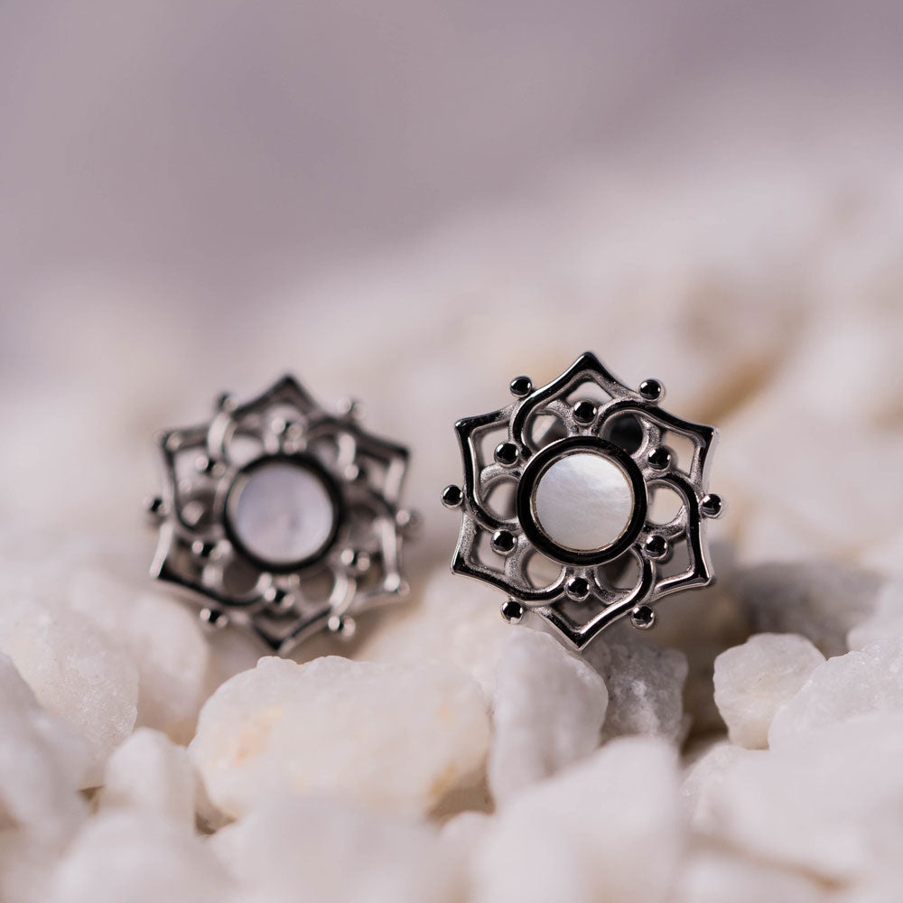 Damen Ohrringe aus Edelstahl plattiert mit weißem Perlmutt in Blütenform