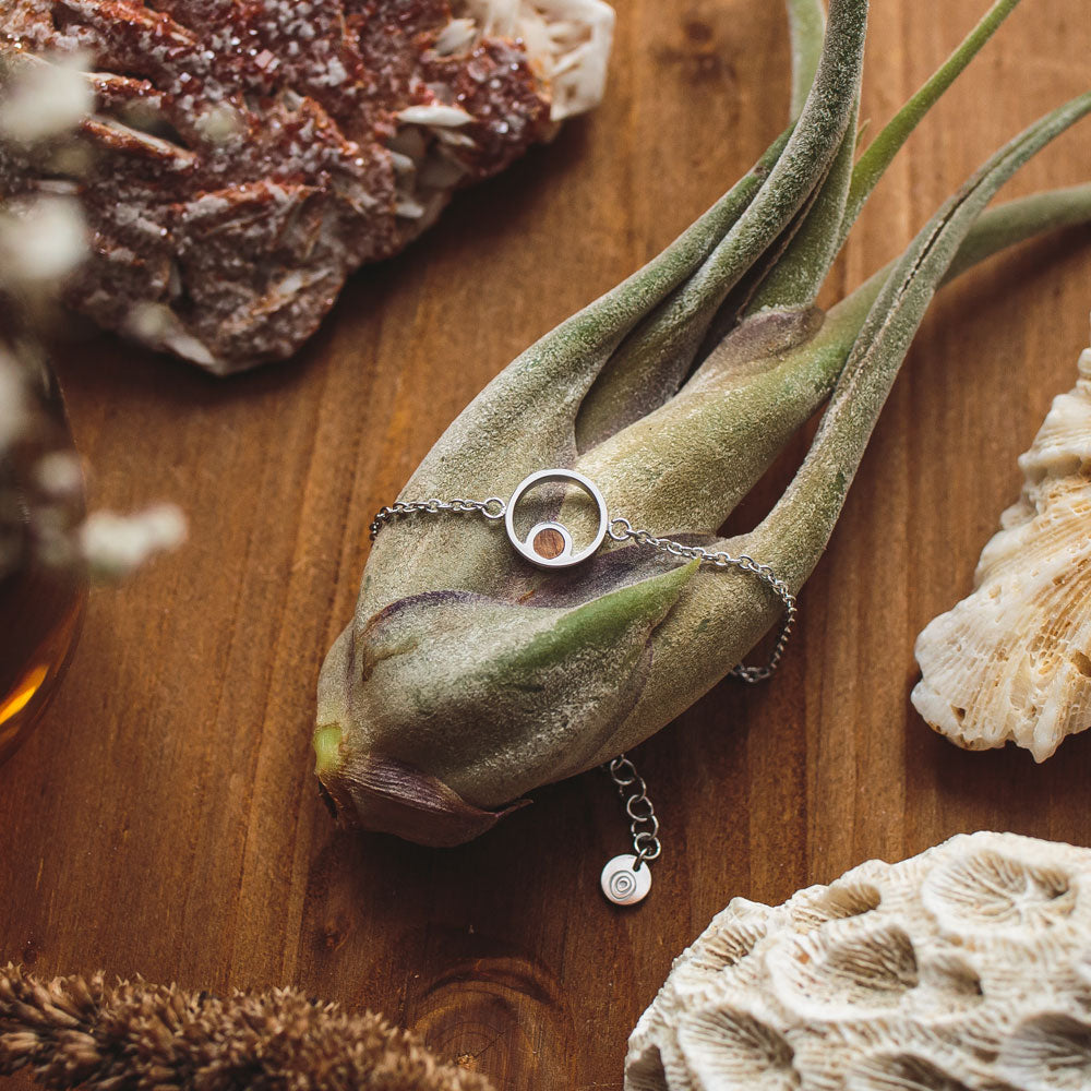 Die feine Ankerkette verleiht dem Armband einen femininen und filigranen Look. Mit einer verstellbaren Länge von 137 bis 175 mm passt es sich optimal an jedes Handgelenk an und sorgt dank des hochwertigen Karabinerverschlusses für sicheren Halt und hohen Tragekomfort. Die harmonische Kombination aus kühlem Silber und den warmen Brauntönen des Holzes macht dieses Armband zu einem vielseitigen Accessoire – passend für Alltag, Büro und besondere Anlässe.