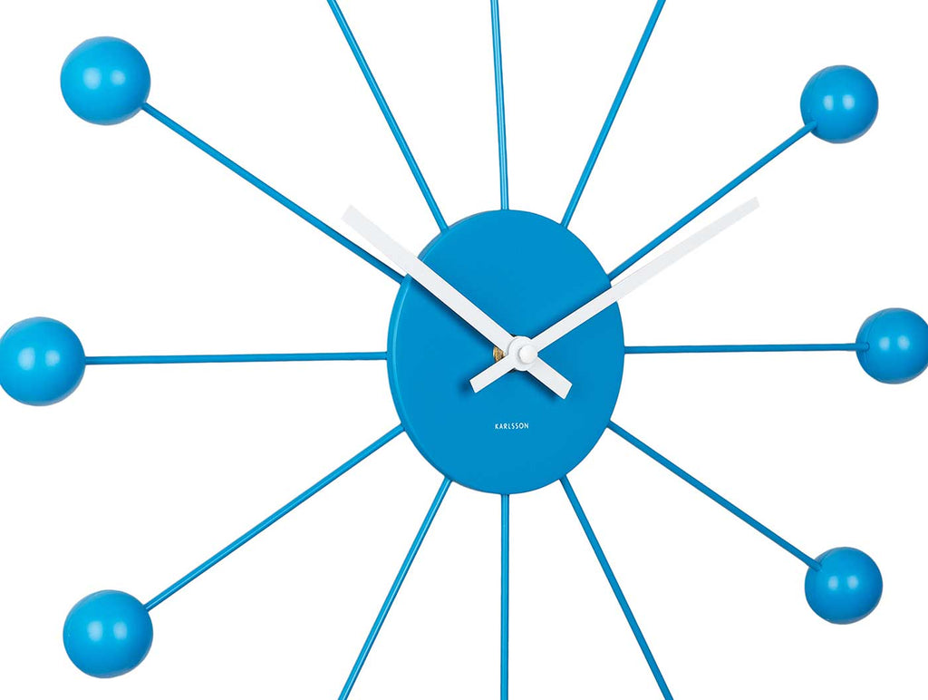 Mit einem Durchmesser von 40 cm ist die Uhr groß genug, um in jedem Wohnbereich gut sichtbar zu sein, bleibt jedoch durch ihr schlankes Profil von 4 cm Tiefe angenehm dezent. Das robuste Eisen verleiht Stabilität und eine hochwertige Haptik, während das zuverlässige Quarzwerk die Zeit präzise anzeigt. Die Karlsson KA5977BB ist ideal für alle, die minimalistisches Design mit einem modernen Farbakzent verbinden möchten – ob im Wohnzimmer, Essbereich oder Büro.