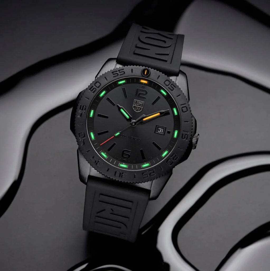 Die Pacific Diver ist Ihr perfekter Begleiter für Outdoor-Aktivitäten und Survival-Situationen. Die einzigartige Luminox Light Technology sorgt für eine konstante, selbstständige Beleuchtung für bis zu 25 Jahre, während das robuste Carbonox-Material extremen Bedingungen standhält.