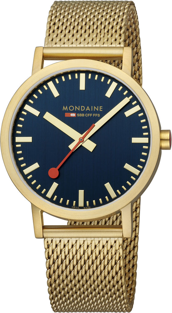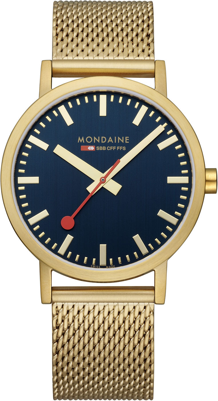 Die Mondaine Classic ist mehr als nur ein Zeitmesser – sie ist ein Statement. Gefertigt mit einem robusten Edelstahlgehäuse und ausgestattet mit einem hochwertigen Mineralglas, bietet sie Langlebigkeit und Stil für jeden Anlass. Der unverwechselbare rote Sekundenzeiger, eine Hommage an das Original der SBB, fängt die Aufmerksamkeit ein und unterstreicht die Einzigartigkeit dieser Uhr.