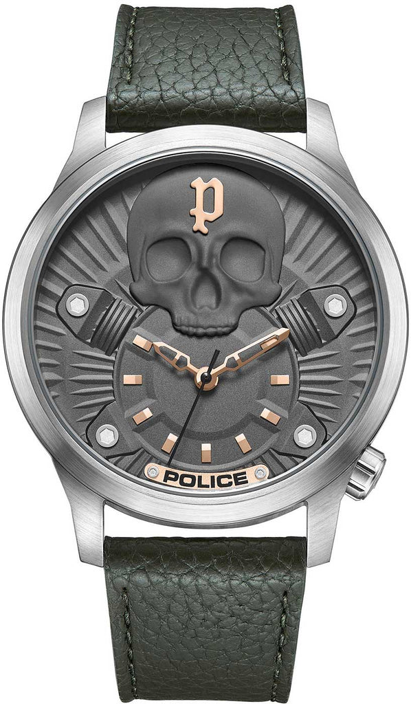 - Robustes Edelstahlgehäuse für Langlebigkeit im markanten Police-Design.