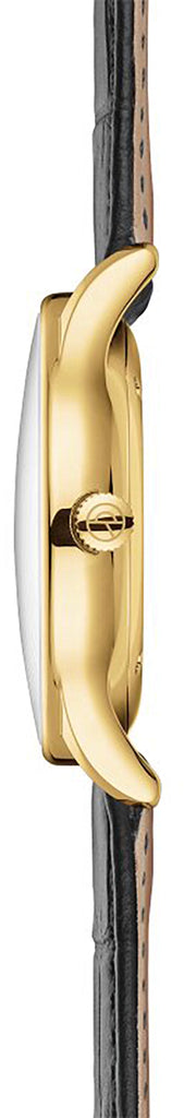- Goldfarbenes Edelstahlgehäuse mit 38 mm Durchmesser