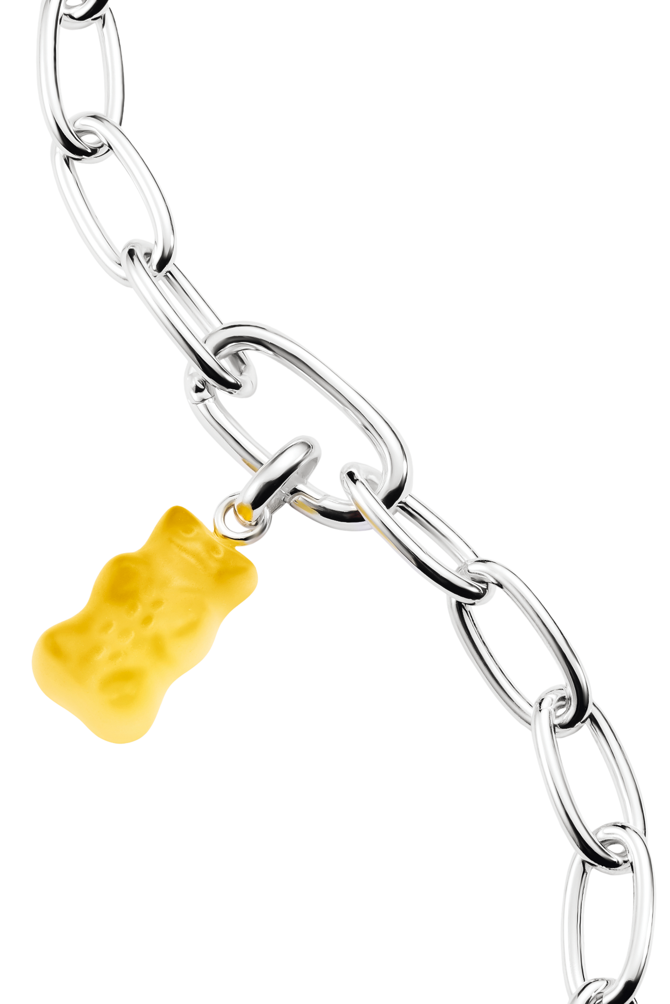 Der Charm Anhänger Goldbär aus Glas und 925 Sterling Silber von Thomas Sabo (Modellnummer CC1275-017-4) ist ein detailreich gefertigtes Schmuckstück mit auffälliger Gestaltung. Der Anhänger kombiniert 925 Sterling Silber mit gelb eingefärbtem Glas, wodurch ein klarer Kontrast zwischen den Materialien entsteht. Das Motiv zeigt einen stilisierten Bären in Glasoptik, der durch die intensive Farbgebung in Gelb hervorsticht.
