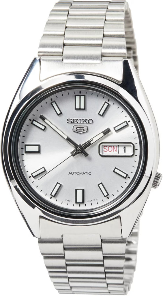 Diese Uhr gehört zur exklusiven Seiko 5 Kollektion, die seit 1963 weltweit für ihre fünf Kernmerkmale Automatikwerk, Tag-Datum-Anzeige, Wasserdichtigkeit, versenkte Krone und Robustheit bekannt ist.