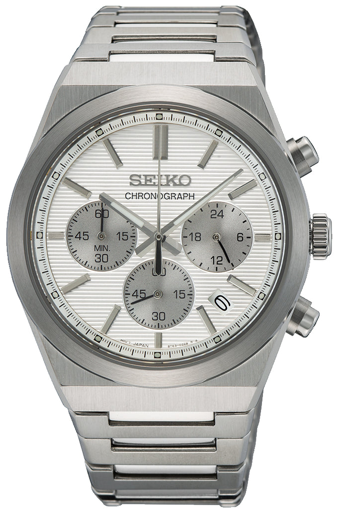 Diese Uhr gehört zur exklusiven Auswahl an Seiko Chronographen, die für ihre technische Präzision und zeitlose Ästhetik weltweit geschätzt werden.