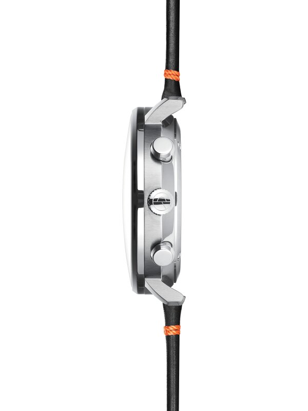 Das exklusive nero-orange Editionsband aus Rindsleder sorgt für einen sportlichen Akzent am Handgelenk. Die detailreiche Bodengravur mit Eissturmvögeln rundet dieses besondere Modell ab.