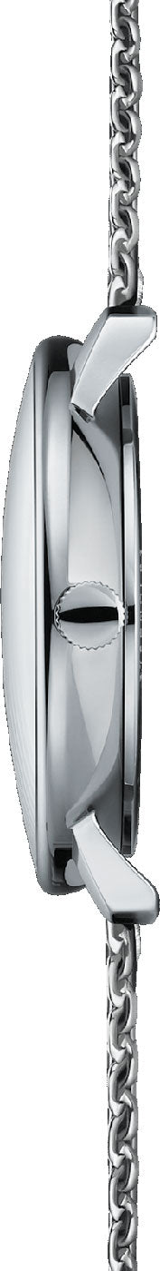 - Poliertes, silberfarbenes Edelstahlgehäuse mit 38 mm Durchmesser