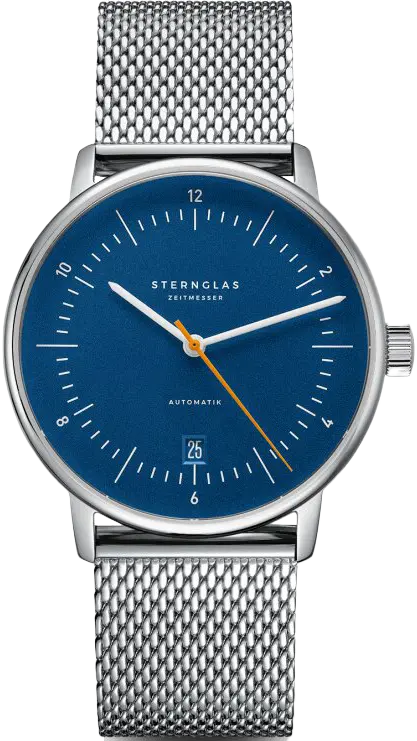 Die Sternglas Automatik mit blauem Zifferblatt und Milanaise-Armband ist die ideale Uhr für Herren, die Wert auf zeitlose Eleganz, hochwertige Materialien und technische Präzision legen.
