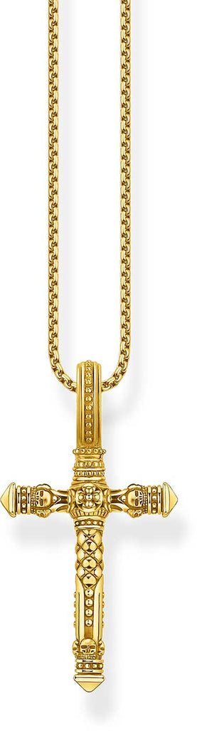 Anhänger Kreuz mit Totenkopfdetails – 750 Gelbgold vergoldet
