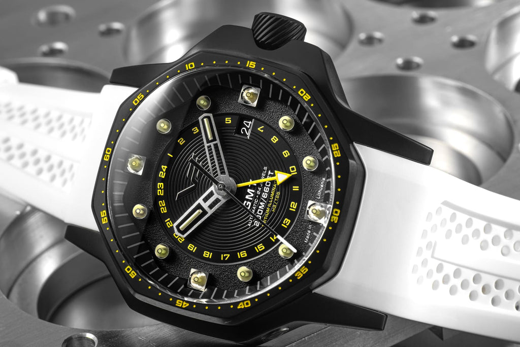 Vertikal angebrachte Tritium-Röhrchen sorgen zudem für eine permanente, erstklassige Ablesbarkeit bei Dunkelheit.