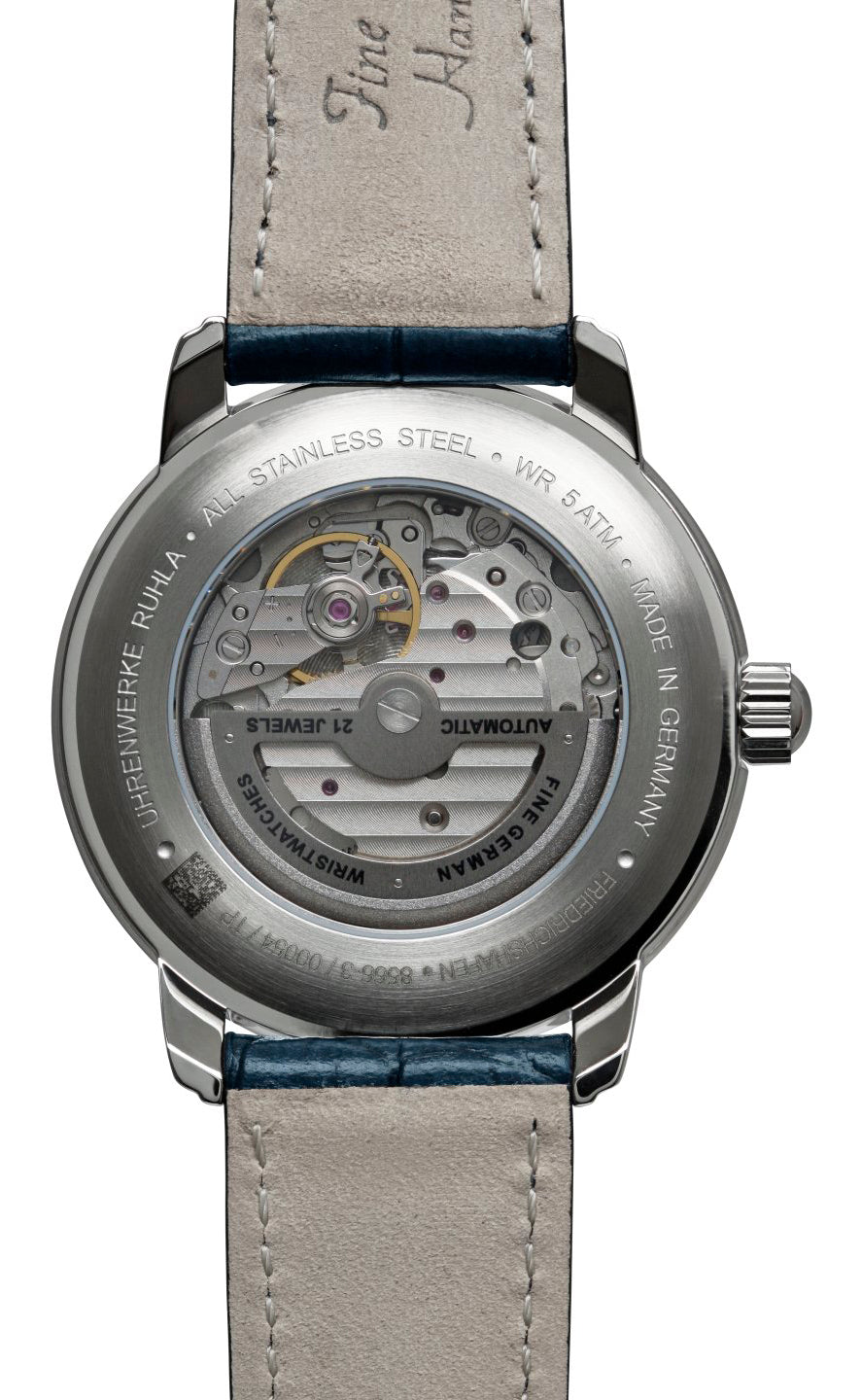 - Gehäuseboden: Glasboden – Sicht auf das Werk